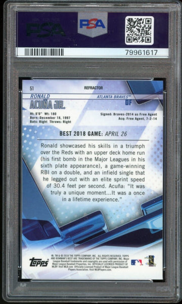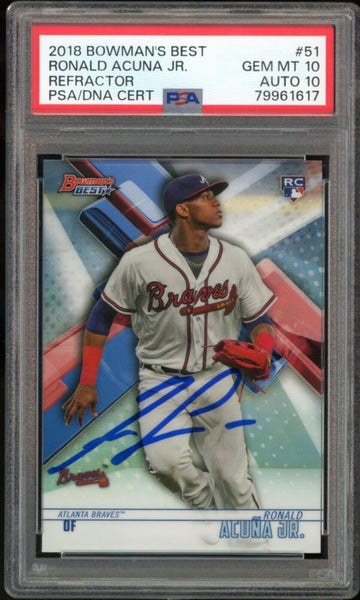 2018 Bowman's Best Refractor Ronald Acuna Jr. RC On Card PSA 10/10 Auto GEM MINT