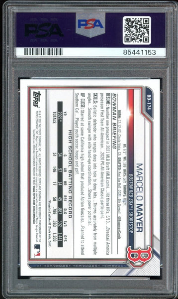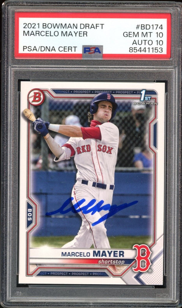 2021 Bowman Draft #BD-174 Marcelo Mayer RC On Card PSA 10/10 Auto GEM MINT
