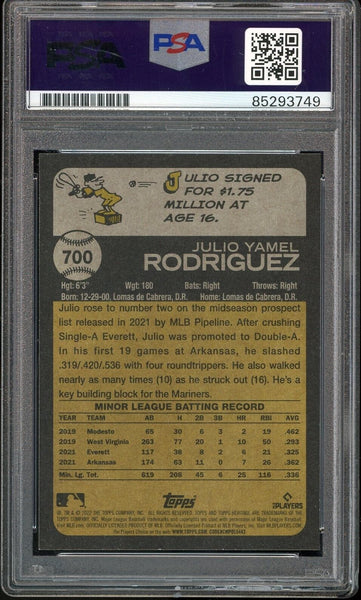 2022 Topps Heritage #700 Julio Rodriguez RC PSA/DNA Auto Grade GEM MINT 10