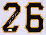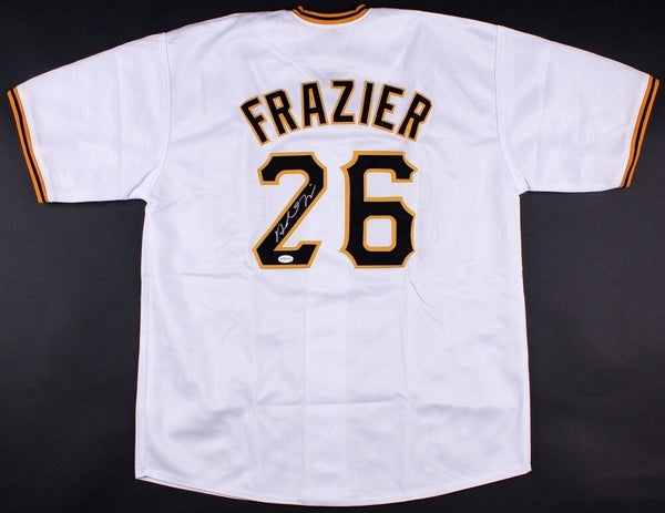 Custom on-field style jersey. Everything sewn on, size XL. Hand-signed in silver felt-tip pen by Adam Frazier. The lot / autograph(s) includes an official Total Sports Enterprises (TSE) hologram for authenticity purposes. Authentication: Total Sports Enterprises Hologram