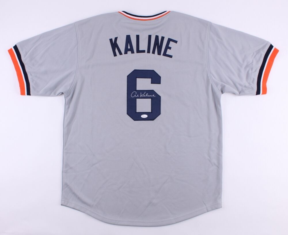 Custom on-field style jersey. Everything is sewn on, size XL. Hand-signed in silver paint pen by Al Kaline (Detroit Tigers, HOF). The autograph includes an official James Spence Authentication (JSA) hologram and matching COA for authenticity purposes. The signing of this item was witnessed by JSA.Authentication: JSA COA