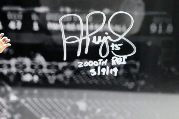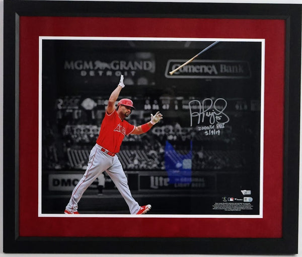 Add a piece of baseball history to your collection with this stunning Albert Pujols signed 16x20 photo, featuring two special inscriptions and a premium frame. This exclusive collectible captures the legendary slugger in action with the Los Angeles Angels, celebrating his remarkable career. Authenticated by both MLB and Fanatics, this framed photo is a must-have for any baseball enthusiast. Key Features: Authentic Signature: Hand-signed by Albert Pujols, ensuring the highest level of authenticity. Special Inscriptions: Includes two unique inscriptions, adding significant value and uniqueness to this collectible. Premium Framing: The 16x20 photo is professionally framed, making it ready for display in any setting. Dual Authentication: Comes with holograms from both MLB and Fanatics, providing double assurance of the autograph's authenticity.Celebrate a historic moment with this Albert Pujols autographed Los Angeles Angels 16x20 photo, featuring the inscription "2000th RBI 5/9/19". This officially licensed MLB photo captures Pujols' milestone moment in stunning detail. Each photo comes with a certificate of authenticity, guaranteeing its legitimacy. Whether you're a die-hard Angels fan, a collector of baseball memorabilia, or a fan of Albert Pujols, this autographed photo is a must-have addition to your collection. Product Details: Player: Albert Pujols Team: Los Angeles Angels Size: 16x20 inches Inscription: "2000th RBI 5/9/19" Authentication: Autographed with certificate of authenticity Officially licensed MLB product Don't miss out on this rare opportunity to own a piece of baseball history.