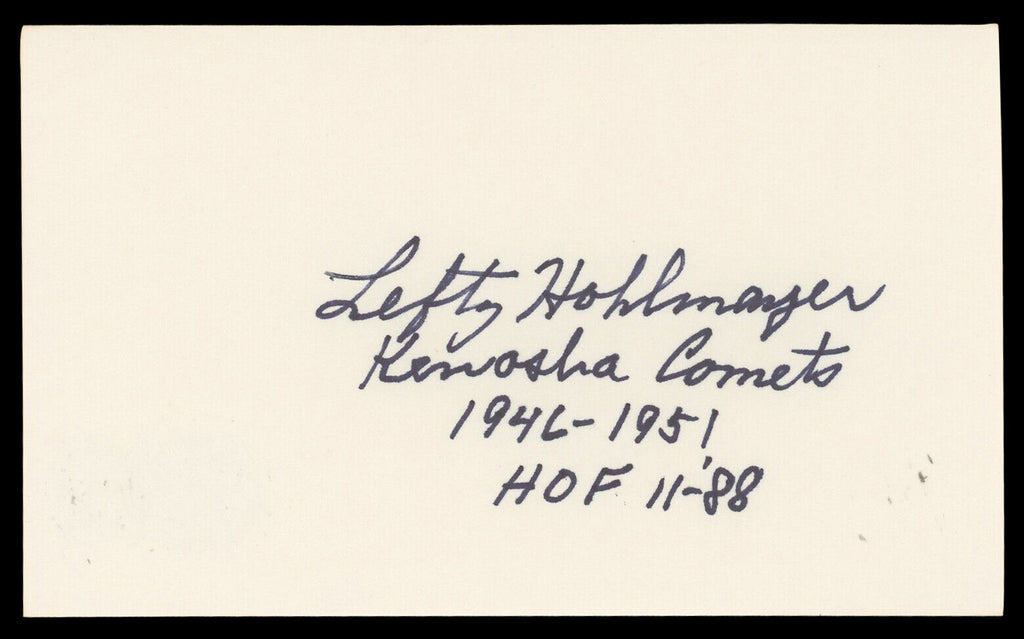 This Autographed 3x5 Index Card with the inscription of "Kenosha Comets 1946-1951 HOF 11-88" has been Personally Signed by Alice Hohlmayer. This item is 100% Authentic to include a hologram by Beckett Authentication Services. This item will come with an affixed Beckett Authentication Services (BAS) authentication sticker, which includes a scannable QR code to verify authenticity. Please note that Beckett no longer provides serial-numbered COA cards, and the attached BAS sticker will serve as the complete authentication for this item. The authenticity can be verified on Beckett Authentication Services website.