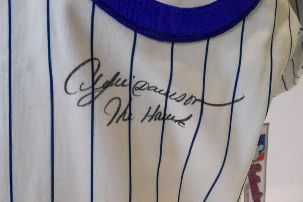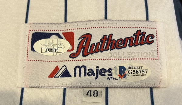 This product is an authentic size 48 Chicago Cubs jersey autographed by baseball player Andre Dawson. The autograph is authenticated by James Spence Authentication (JSA) and comes with a Certificate of Authenticity from both BAS and JSA. This collectible item is a must-have for fans of the Chicago Cubs and baseball enthusiasts looking to add an authentic piece of memorabilia to their collection.Andre Dawson autographed/Inscribed "The Hawk" Cubs Authentic Majestic Jersey Beckett & JSA COARelive the magic of Chicago Cubs baseball with this authentic Andre Dawson autographed jersey, a prized treasure for fans and collectors alike.Crafted to honor the unforgettable career of Andre "The Hawk" Dawson, a true icon of the Cubs franchise, this jersey proudly displays his signature on the fabric. Each autograph serves as a testament to Dawson's skill, passion, and enduring legacy in the world of baseball.Whether you bleed Cubbie blue, collect MLB memorabilia, or simply admire Dawson's contributions to the sport, this autographed jersey is an essential addition to your collection. Showcase it proudly in your home, office, or fan cave to pay homage to one of the Cubs' all-time greats.Highlights:Authentic Chicago Cubs jersey autographed by Andre Dawson, a revered figure in baseball historyPerfect for Cubs fans, collectors of MLB memorabilia, or admirers of Andre DawsonEach signature is authenticated for its legitimacy, ensuring its value and significanceIdeal for display in your home, office, or sports memorabilia collectionA cherished piece of Cubs history, commemorating the career of a true baseball legend