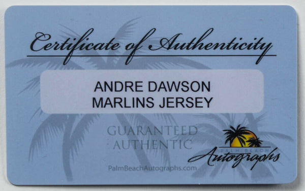 Mitchell and Ness authentic Florida Marlins on-field style jersey. Everything is sewn on, size XL. Has been hand-signed by Andre Dawson (HOF).The lot / autograph(s) includes an official Palm Beach Autographs hologram and matching COA for authenticity purposes.Authentication: Palm Beach COA