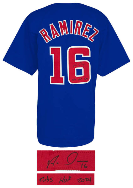 Aramis Ramirez signed blue custom baseball jersey with 'Cubs HOF 2024' inscription. Item comes with a Schwartz Sports Memorabilia tamper-proof numbered hologram and Certificate of Authenticity which can be verified online.