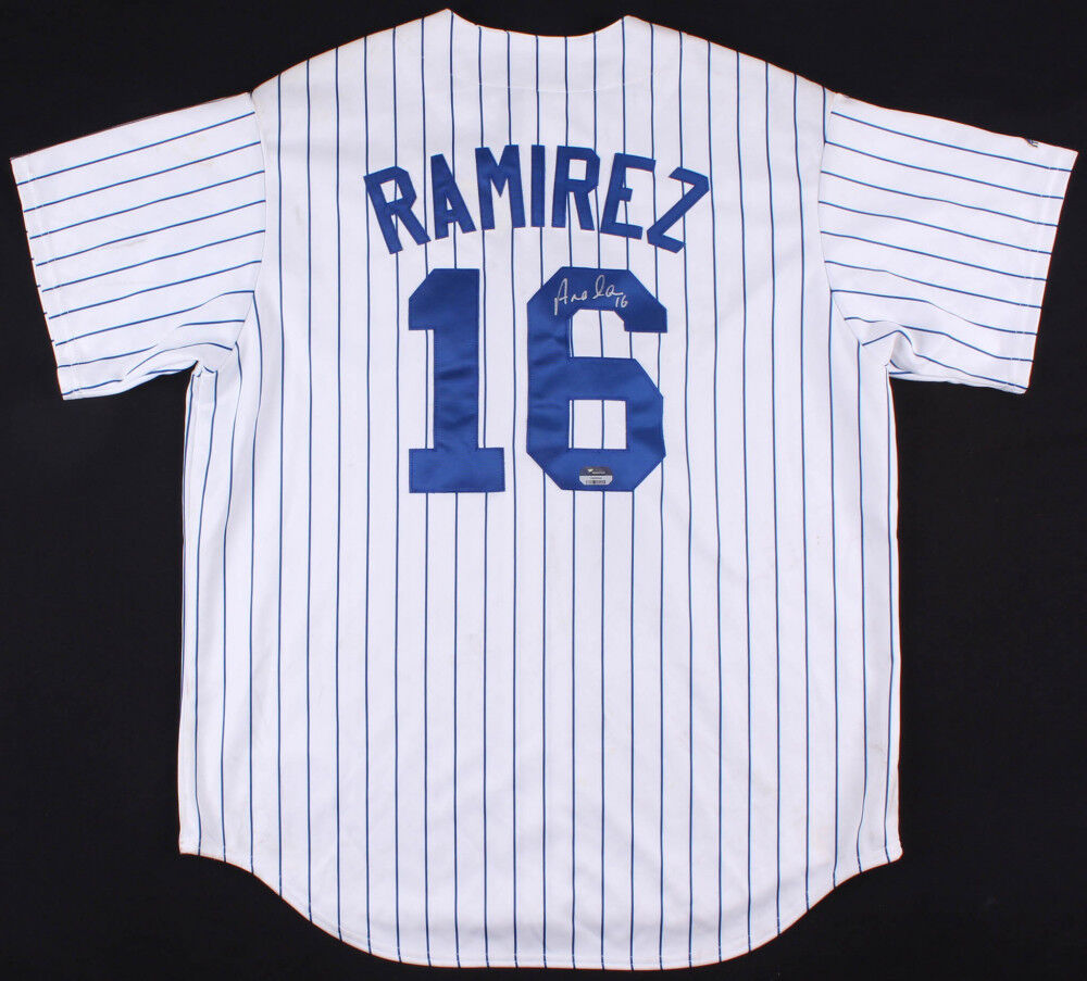 Custom on-field style jersey. Everything has been sewn on, size XL. Hand-signed in silver paint pen by Aramis Ramirez. The autograph includes an official Fanatics hologram for authenticity purposes.Authentication: Fanatics Hologram