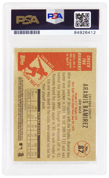 Aramis Ramirez signed Chicago Cubs 2003 Bowman Heritage baseball card #87. The card has been authenticated and encapsulated by PSA/DNA and the number can be verified online. The image of the item is a stock photo, as we may have multiples of the item in stock. The Slabbed Card you will receive will be of the card described. (Same grade, Same authentication) You may or may not receive the exact PSA serial number on the slab label shown in image.