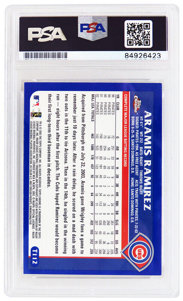 Aramis Ramirez signed Chicago Cubs 2003 Topps Traded chrome baseball card #T112. The card has been authenticated and encapsulated by PSA/DNA and the number can be verified online. The image of the item is a stock photo, as we may have multiples of the item in stock. The Slabbed Card you will receive will be of the card described. (Same grade, Same authentication) You may or may not receive the exact PSA serial number on the slab label shown in image.