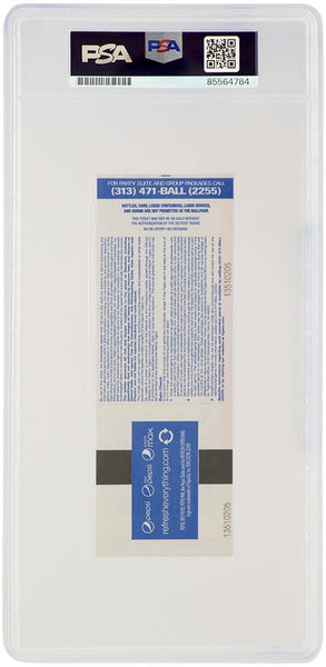 Armando Galarraga signed Detroit Tigers vs Cleveland June 2, 2010 game ticket with 'Almost Perfect' and '28 Up, 28 Down' inscriptions. The ticket has been authenticated and encapsulated by PSA/DNA and the number can be verified online.