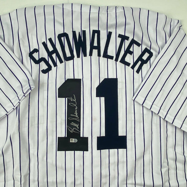 Autographed/Signed Buck Showalter New York Pinstripe Baseball Jersey MLB COA This is a custom jersey and was not manufactured by or in any manner associated with any professional sports league or manufacturer. This custom jersey carries no professional sports league designation. The item is intended to be an autographed collectible. Reference of team in the title is to allow the purchaser a point of association. The custom jersey displays the name, number and authenticated signature of the player. This item in no way is affiliated with or connected to any professional sports organization. The autograph, as always is guaranteed to be authentic and has been certified as authentic by a third-party, trusted authenticator. Size is XL unless otherwise noted.