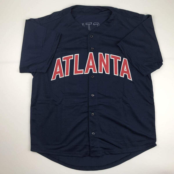 Autographed/Signed David Justice Atlanta Blue Baseball Jersey JSA COA Jersey has no brand names or logos. This is a custom jersey and was not manufactured by or in any manner associated with any professional sports league or manufacturer. This custom jersey carries no professional sports league designation. The item is intended to be an autographed collectible. The custom jersey displays the name and number of the player. This item in no way is affiliated with or connected to any professional sports organization. Size is XL.
