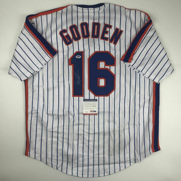 Autographed/Signed DWIGHT DOC GOODEN New York Pinstripe Jersey PSA/DNA COA Auto This is a custom jersey and was not manufactured by or in any manner associated with any professional sports league or manufacturer. This custom jersey carries no professional sports league designation. The item is intended to be an autographed collectible. Reference of team in the title is to allow the purchaser a point of association. The custom jersey displays the name, number and authenticated signature of the player. This item in no way is affiliated with or connected to any professional sports organization. The autograph, as always is guaranteed to be authentic and has been certified as authentic by a third-party, trusted authenticator. Size is XL unless otherwise noted.