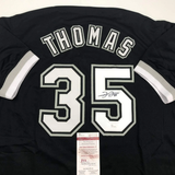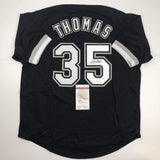 Autographed/Signed FRANK THOMAS Chicago Black Baseball Jersey JSA COA Auto This is a custom jersey and was not manufactured by or in any manner associated with any professional sports league or manufacturer. This custom jersey carries no professional sports league designation. The item is intended to be an autographed collectible. Reference of team in the title is to allow the purchaser a point of association. The custom jersey displays the name, number and authenticated signature of the player. This item in no way is affiliated with or connected to any professional sports organization. The autograph, as always is guaranteed to be authentic and has been certified as authentic by a third-party, trusted authenticator. Size is XL unless otherwise noted.