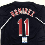 Autographed/Signed JOSE RAMIREZ Cleveland Blue Baseball Jersey Beckett BAS COA This is a custom jersey and was not manufactured by or in any manner associated with any professional sports league or manufacturer. This custom jersey carries no professional sports league designation. The item is intended to be an autographed collectible. Reference of team in the title is to allow the purchaser a point of association. The custom jersey displays the name, number and authenticated signature of the player. This item in no way is affiliated with or connected to any professional sports organization. The autograph, as always is guaranteed to be authentic and has been certified as authentic by a third-party, trusted authenticator. Size is XL unless otherwise noted.