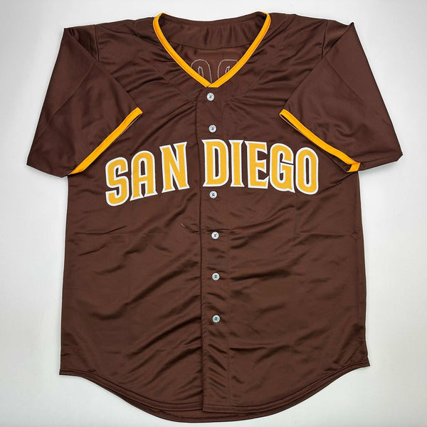Autographed/Signed Luis Arraez San Diego Brown Baseball Jersey Beckett BAS COA Jersey has no brand names or logos. This is a custom jersey and was not manufactured by or in any manner associated with any professional sports league or manufacturer. This custom jersey carries no professional sports league designation. The item is intended to be an autographed collectible. The custom jersey displays the name and number of the player. This item in no way is affiliated with or connected to any professional sports organization. Size is XL.
