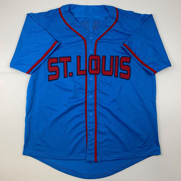Autographed/Signed Nolan Gorman St. Louis Blue Baseball Jersey JSA COA Jersey has no brand names or logos. This is a custom jersey and was not manufactured by or in any manner associated with any professional sports league or manufacturer. This custom jersey carries no professional sports league designation. The item is intended to be an autographed collectible. The custom jersey displays the name and number of the player. This item in no way is affiliated with or connected to any professional sports organization. Size is XL.