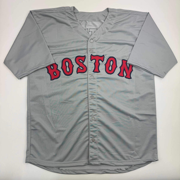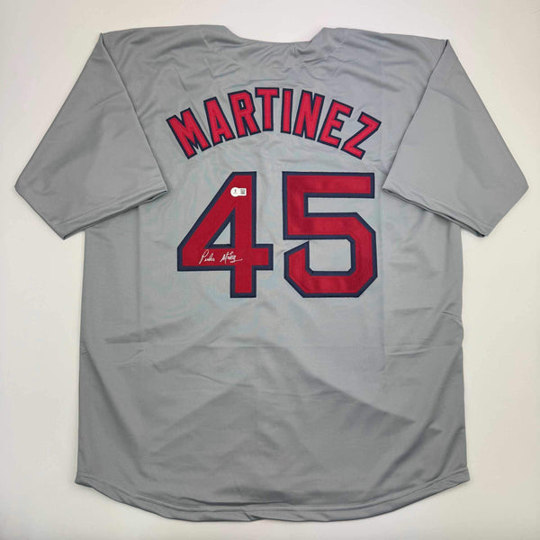 Autographed/Signed Pedro Martinez Boston Grey Baseball Jersey Beckett BAS COA Jersey has no brand names or logos. This is a custom jersey and was not manufactured by or in any manner associated with any professional sports league or manufacturer. This custom jersey carries no professional sports league designation. The item is intended to be an autographed collectible. The custom jersey displays the name and number of the player. This item in no way is affiliated with or connected to any professional sports organization. Size is XL.