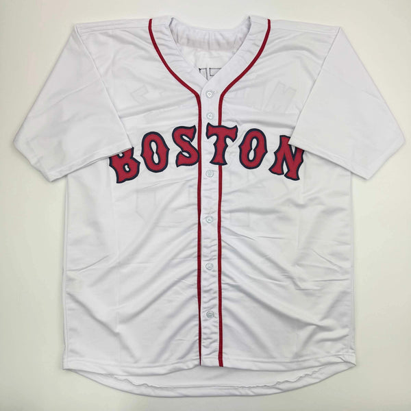 Autographed/Signed Pedro Martinez Boston White Baseball Jersey Beckett BAS COA Jersey has no brand names or logos. This is a custom jersey and was not manufactured by or in any manner associated with any professional sports league or manufacturer. This custom jersey carries no professional sports league designation. The item is intended to be an autographed collectible. The custom jersey displays the name and number of the player. This item in no way is affiliated with or connected to any professional sports organization. Size is XL.