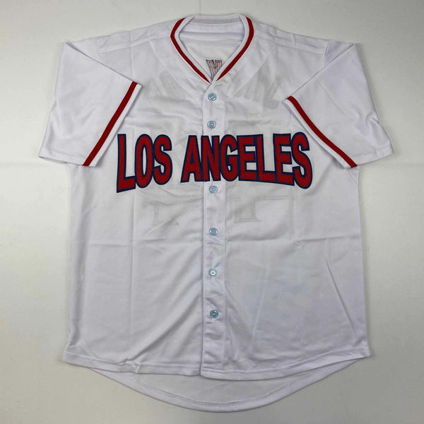 Autographed/Signed Reggie Jackson California Los Angeles White Jersey JSA COA Jersey has no brand names or logos. This is a custom jersey and was not manufactured by or in any manner associated with any professional sports league or manufacturer. This custom jersey carries no professional sports league designation. The item is intended to be an autographed collectible. The custom jersey displays the name and number of the player. This item in no way is affiliated with or connected to any professional sports organization. Size is XL.