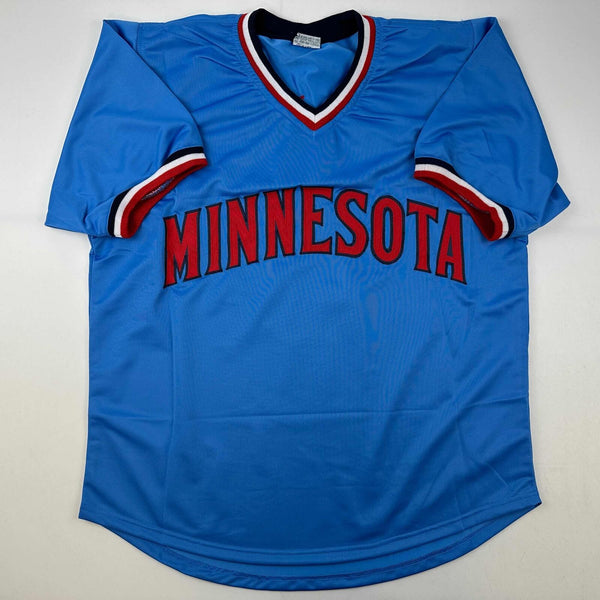 Autographed/Signed Tony Oliva Minnesota Light Blue Baseball Jersey Beckett COA Jersey has no brand names or logos. This is a custom jersey and was not manufactured by or in any manner associated with any professional sports league or manufacturer. This custom jersey carries no professional sports league designation. The item is intended to be an autographed collectible. The custom jersey displays the name and number of the player. This item in no way is affiliated with or connected to any professional sports organization. Size is XL.
