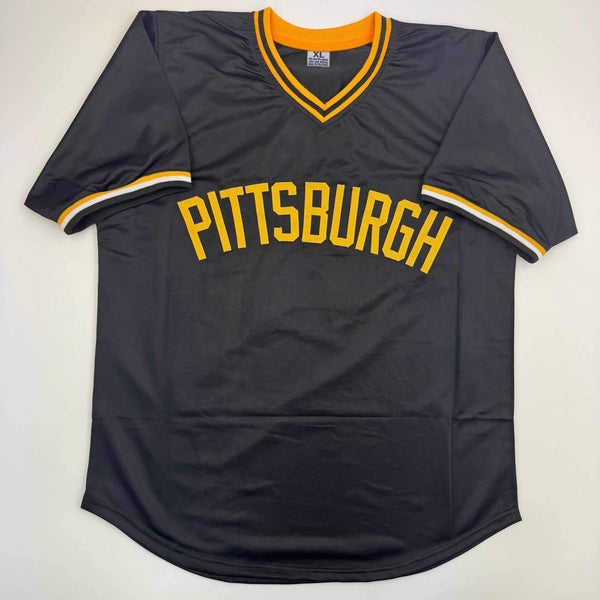 Autographed/Signed Tony Pena Pittsburgh Black Baseball Jersey JSA COA Jersey has no brand names or logos. This is a custom jersey and was not manufactured by or in any manner associated with any professional sports league or manufacturer. This custom jersey carries no professional sports league designation. The item is intended to be an autographed collectible. The custom jersey displays the name and number of the player. This item in no way is affiliated with or connected to any professional sports organization. Size is XL.
