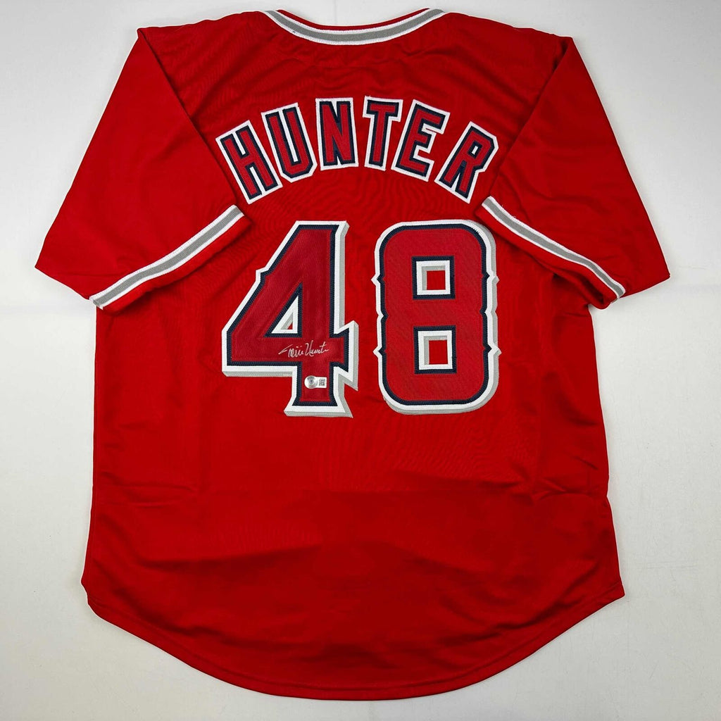 Autographed/Signed Torii Hunter Los Angeles Anaheim Red Jersey Beckett BAS COA Jersey has no brand names or logos. This is a custom jersey and was not manufactured by or in any manner associated with any professional sports league or manufacturer. This custom jersey carries no professional sports league designation. The item is intended to be an autographed collectible. The custom jersey displays the name and number of the player. This item in no way is affiliated with or connected to any professional sports organization. Size is XL.