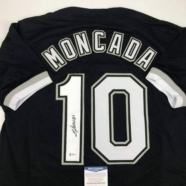 Autographed/Signed YOAN MONCADA Chicago Black Baseball Jersey Beckett BAS COA This is a custom jersey and was not manufactured by or in any manner associated with any professional sports league or manufacturer. This custom jersey carries no professional sports league designation. The item is intended to be an autographed collectible. Reference of team in the title is to allow the purchaser a point of association. The custom jersey displays the name, number and authenticated signature of the player. This item in no way is affiliated with or connected to any professional sports organization. The autograph, as always is guaranteed to be authentic and has been certified as authentic by a third-party, trusted authenticator. Size is XL unless otherwise noted.