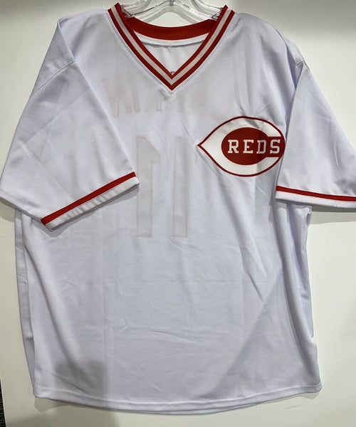 This autographed jersey has been personally hand-signed by Barry Larkin of the Cincinnati Reds. This autograph is certified by James Spence Authentication's (JSA) Witnessed Protection Program. That means that a JSA representative was present when this item was signed. It comes with the numbered hologram and matching Certificate of Authenticity.Custom on-field style jerseys are a more affordable option for autograph seekers. These jerseys do not have any brand name or tags and are made in the Philippines. They feature stitched on names and numbers and are made to look very similar to the on-field jerseys that the players wear. These custom jerseys are very commonly used in the memorabilia industry.