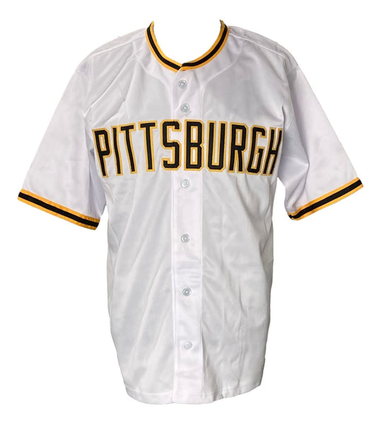 Featured is a Bill Mazeroski signed custom baseball jersey, inscribed "HOF 01". This jersey has been hand signed by Mazeroski and comes with the JSA hologram and certificate of authenticity. This jersey features professionally sewn letters and numbers and is size XL. This jersey has no team tags or emblems and is intended as a sports collectible! SPECIFICATIONS Autographed By: Bill Mazeroski Team: Pittsburgh Pirates Sport: Baseball Authentication: James Spence Authentication (JSA)