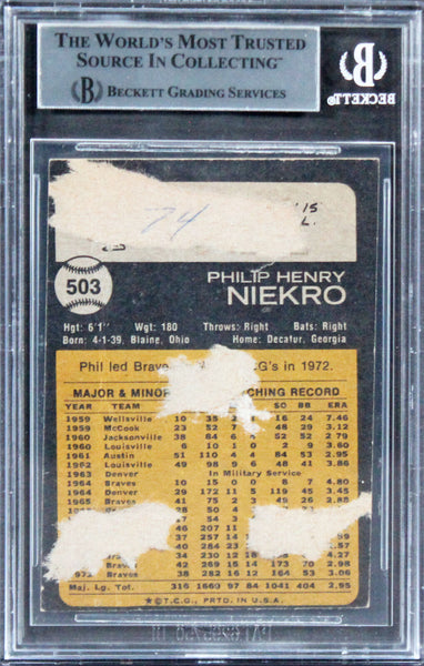 Braves Phil Niekro Authentic Signed 1973 Topps #503 Card BAS Slabbed