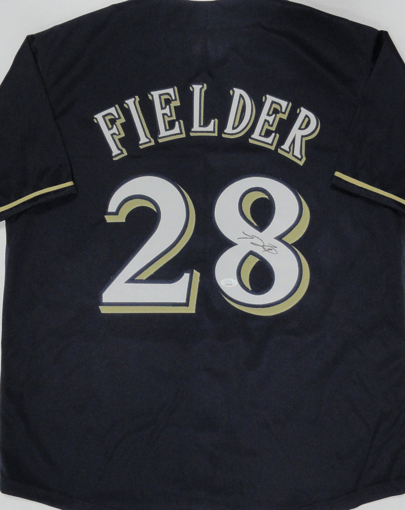 Custom replica jersey of Milwaukee Brewers All Star Infielder PRINCE FIELDER. This jersey is signed with Black Sharpie and is size XL with all letters and numbers sewn in. This item was signed at a private signing in our store and would make a great addition to any Brewers collection. This autograph is guaranteed to be 100% authentic and will include a COA from JSA (James Spence Authentication).