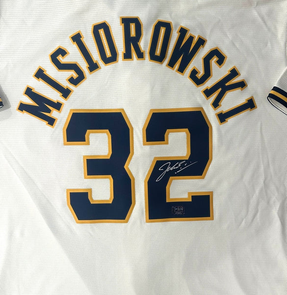 Official Nike Jersey by Milwaukee Brewers All Star Pitcher JACOB MISIOROWSKI. This jersey is signed with Silver paint pen. This jersey is size XL with all letters and numbers sewn in. This item was signed at a private signing and would make a great addition to any BREWERS collection. This autograph is guaranteed to be 100% authentic and will include a COA hologram from PROVA authentication.