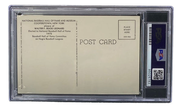 Featured is a Buck Leonard (Homestead Grays) signed 4x6 Hall Of Fame plaque card. This card has been hand signed by Leonard and has been authenticated and encapsulated by PSA/DNA. This card would make a great addition to any sports memorabilia collection! SPECIFICATIONS Autographed By: Buck Leonard Team: Homestead Grays Sport: Baseball Authentication: Professional Sports Authenticator (PSA)