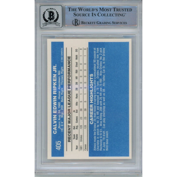 Cal Ripken Autographed 1982 Donruss 405 Trading Card 10 Grade Beckett 47023