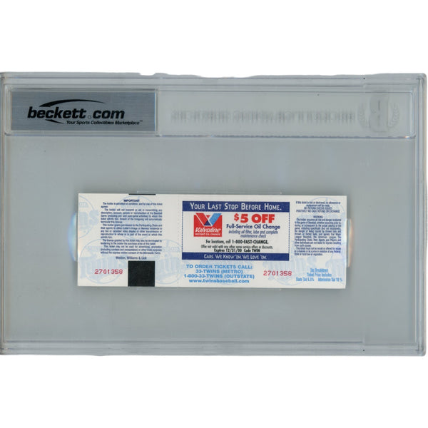 The number in the listing title is just an inventory sku for our records and is not the authentication number. The item pictured is the exact item you will receive, please see photos for condition. This is a Baltimore Orioles vs Minnesota Twins April 15, 2000 3000 Hit Game Slabbed Ticket Stub that was personally autographed by Cal Ripken includes "3000th Hit" inscription. Includes a certificate of authenticity from Beckett Authentication Services (BAS) and Denver Autographs (DEN). FREE SHIPPING within the USA on orders over $10!
