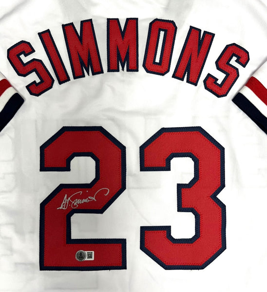 Custom Replica Jersey by St. Louis Cardinals Hall of Famer TED SIMMONS. This jersey is signed with a black paint pen. This Custom made jersey is size XL with all letters and numbers sewn in. This item was signed at a signing with us and would make a great addition to any Cardinals collection. This autograph is guaranteed to be 100% authentic and will include a COA hologram from Beckett Authentication.