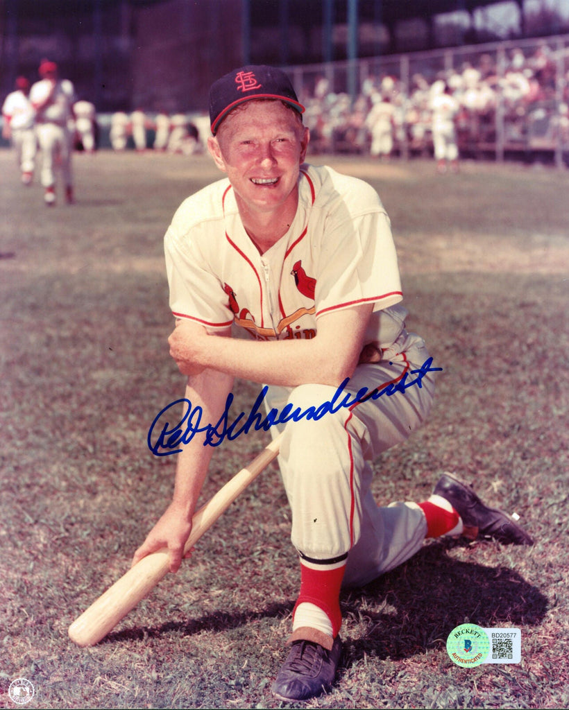 This Autographed Vertical Kneeling 8x10 Photo has been Personally Signed by Red Schoendienst of the St. Louis Cardinals. This item is 100% Authentic to include a Certificate of Authenticity (COA) / hologram by Beckett Authentication Services. We have multiples of this same item. While the photographs are representative of this item, the size, placement and strength of the signature may vary. Each item is hand signed, therefore, each autograph is unique.
