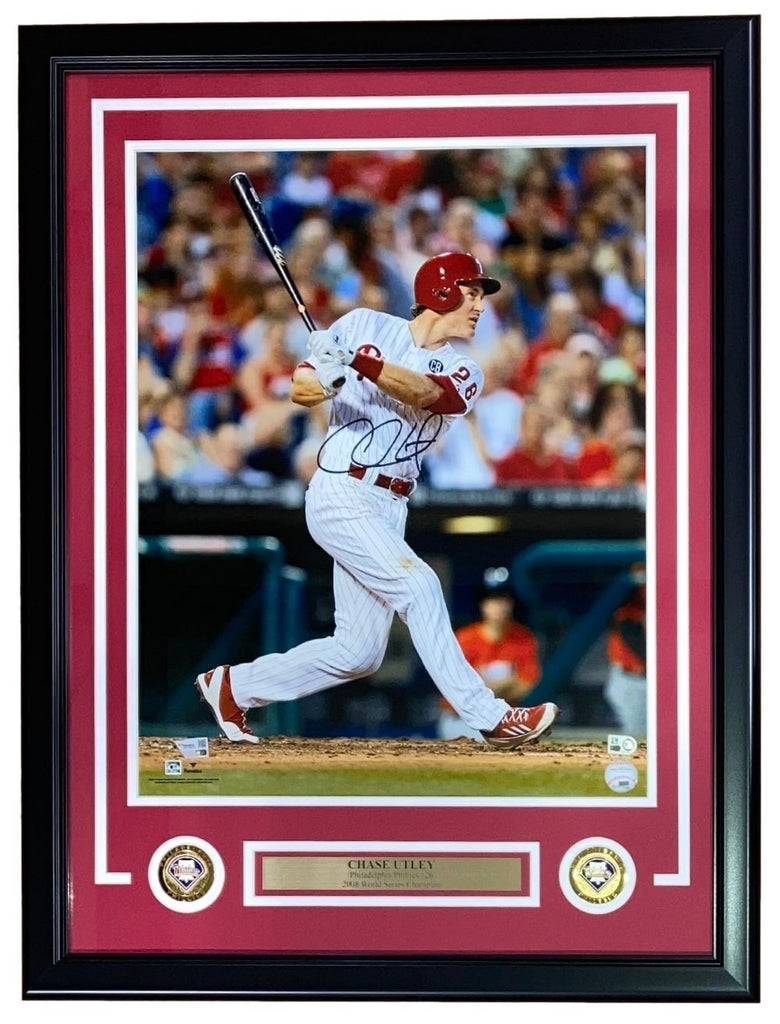 Featured is a Chase Utley signed 16x20 Philadelphia Phillies photo. This photo has been hand signed by Utley and comes with the Fanatics hologram and certificate of authenticity. This photo has been professionally framed and matted and is approximately 22x27. This photo would make a great addition to any sports memorabilia colllection!. SPECIFICATIONS Autographed By: Chase Utley Team: Philadelphia Phillies Sport: Baseball Authentication: Fanatics Authentic