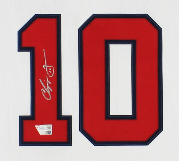 An Atlanta Braves Mitchell & Ness Authentic White Jersey hand signed by Chipper Jones. The signature and item are in excellent condition. Chipper is an 8x All-Star World Series Champ, 2x Silver Slugger, and 1999 National League Most Valuable Player. Do not miss out on this truly exquisite piece from a baseball legend!! AUTHENTICATION: The item has been tagged with a Fanatics Authentic Serial Numbered and Databased Hologram