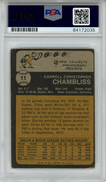 Chris Chambliss Autographed 1973 Topps #11 Trading Card PSA Slab 43813 The number in the listing title is just an inventory sku for our records and is not the authentication number. This is the exact item that you will receive so please see pictures for condition. This is a trading card that was personally autographed by Chris Chambliss. This has been professionally slabbed by Professional Authentication Services (PSA) and includes a certificate of authenticity from Denver Autographs.