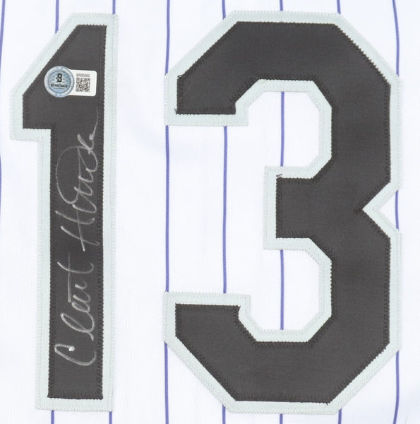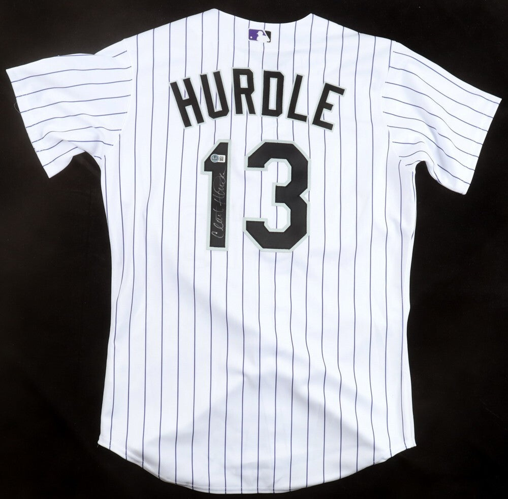 Custom on-field style jersey. Everything is sewn on, size XL. Hand-signed by Clint Hurdle.The autograph includes an official Beckett Authentication Services serially numbered hologram and QR Code card for authenticity purposes. The signing of this item was witnessed by Beckett.Authentication: Beckett Hologram with QR Code card