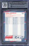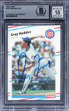 This Autographed Auto Graded Gem Mint 10! 1988 Fleer #423 Card has been Personally Signed by Greg Maddux of the Chicago Cubs. This item is 100% Authentic, it comes slabbed and authenticated by Beckett Authentication Services. We have multiples of this same item. While the photographs are representative of this item, the size and placement of the signature may vary. Each item is hand signed, therefore, each autograph is unique.