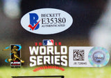 This Autographed 11x14 Framed Photo has been Personally Signed by Kris Bryant of the Chicago Cubs. This item is 100% Authentic to include a Certificate of Authenticity (COA) / hologram by Beckett Authentication Services. The authenticity can be verified on Beckett Authentication Services website. This item has been professionally framed to overall dimensions of approximately 19.5 x 23.5 inches.