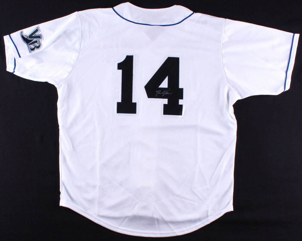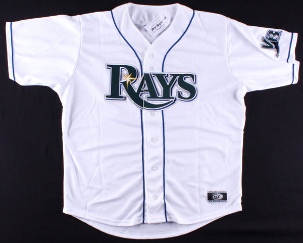 OT Sports on-field style jersey. Everything is sewn on, size XL. Hand-signed in silver paint pen by David Price. The lot / autograph(s) includes an official MLB Authentication hologram for authenticity purposes.Authentication: MLB Hologram & Just Memoribilia COA