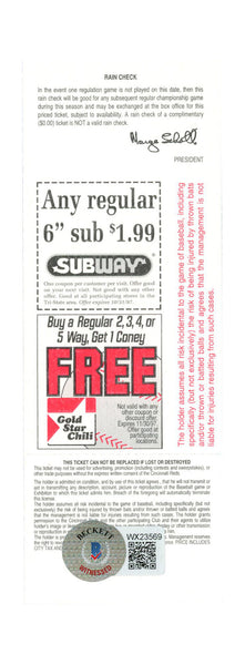 Deion Sanders Signed Cincinnati Reds 8/4/1997 vs Giants Ticket BAS 37223 The number in the listing title is just an inventory sku for our records and is not the authentication number. The item pictured is a stock photo unless otherwise noted. This is a authentic ticket stub that was personally autographed by Deion Sanders. Includes a certificate of authenticity from Beckett Authentication Services (BAS) and Denver Autographs.