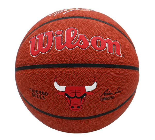 A Chicago Bulls Indoor/Outdoor Logo NBA Basketball hand signed by Dennis Rodman. The item and signature are in excellent condition. Dennis Rodman is a former pro basketball player. Dennis is a 5x NBA Champion, 2x NBA All-Star, and 2x NBA Defensive Player of the Year. AUTHENTICATION: The item is accompanied by a JSA Certificate of Authenticity - JSA Serial Numbered Hologram -