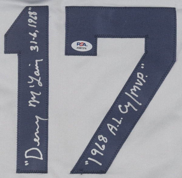 Custom on-field style jersey. Everything sewn on, size XL. Hand-signed in silver paint pen by Denny McClain (Tigers). The autograph(s) includes an official PSA/DNA hologram and QR Code card for authenticity purposes.Authentication: PSA Hologram with QR Code card