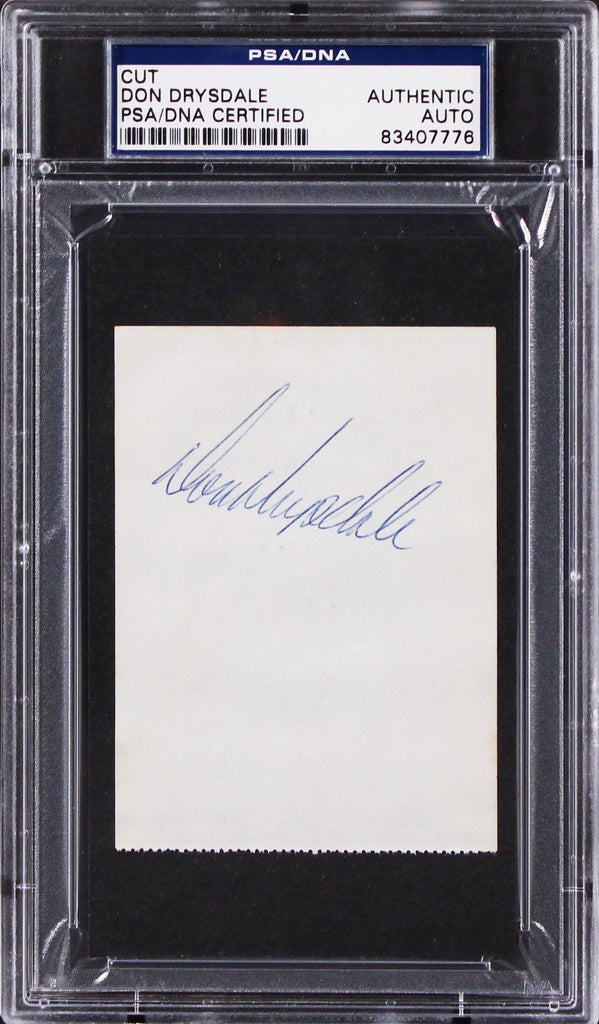 This Autographed 2.75x3.75 Cut Signature has been Personally Signed by Don Drysdale of the Los Angeles Dodgers. This item is 100% Authentic, it comes slabbed and authenticated by PSA/DNA. The authenticity can be verified on Professional Sports Authenticator website.