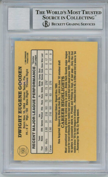 Dwight Gooden Autographed 1985 Donruss #190 Trading Card BAS 10 Slab 31390
